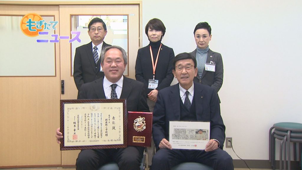 木村義二教育長からは、「胡麻郷小学校の食育の取り組みは、素晴らしい。これからも地域と連携した取り組みをお願いしたい。」とお祝いと激励の言葉が贈られました。