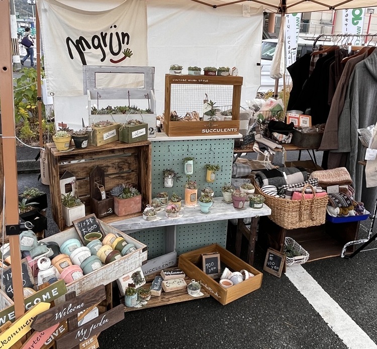 私たちmgrünの作るリメ缶、リメ鉢からお好きな器を選んで多肉植物の寄せ植え体験をしてもらいます。