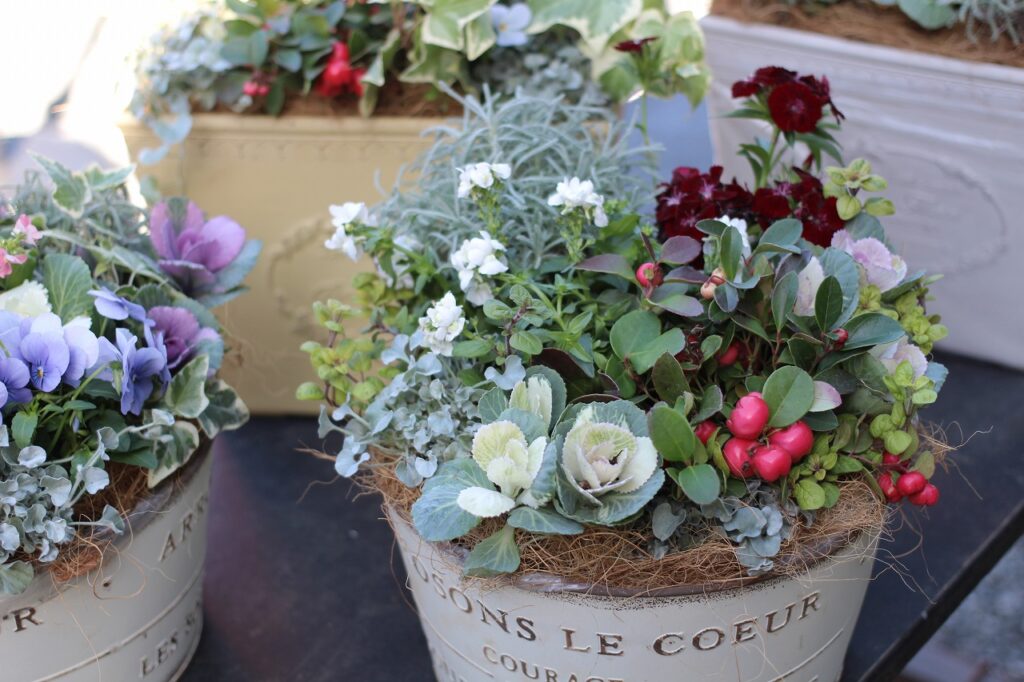 冬の寄せ植えのおすすめの草花や、植え方のアドバイスをさせて頂きます。